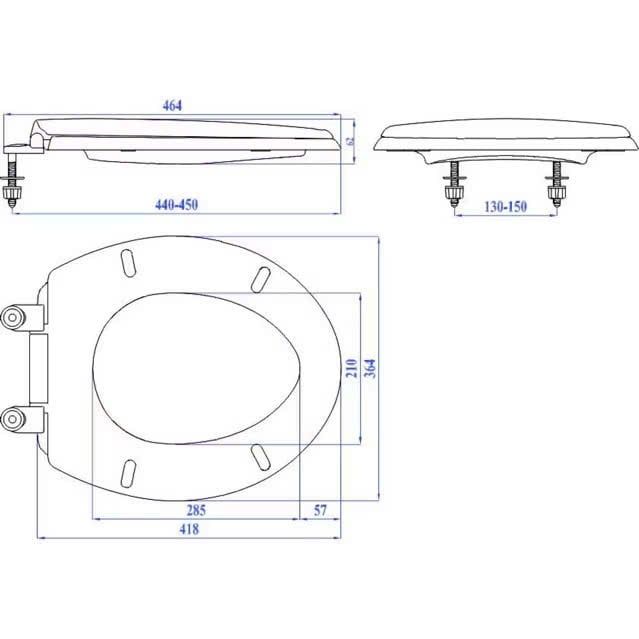 - Kích thước chiều dài nắp phủ bì: 44.5 cm ( Tính từ vị trí tâm chân ốc đến mép mũi bồn cầu)